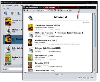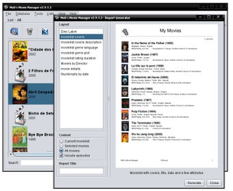 Importe e exporte as informações em arquivos de texto, Excel e HTML, entre outros, e compartilhe a coleção usando os relatórios personalizados do MeD's Movie Manager.